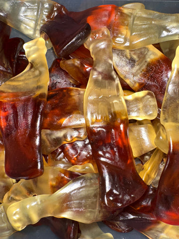 ingredients: sirop de glucose; sucre; gélatine; dextrose; acidifiant: acide citrique; sirop de caramel; arôme; huile de tournesol; agent d'enrobage: cire d'abeille blanche et jaune. Tenir à l'abri de la chaleur et de l'humidité. Peut contenir des traces de blé, lait.