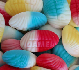 Sirop de glucose, sucre, eau, dextrose, amidon, gélifiant : gélatine halal , huile végétale, arômes et colorants artificiels. Contient du lactose.