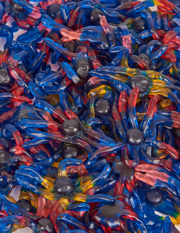 Sirop de glucose, sucre, gélatine, acidifiants : acide citrique, acide lactique, correcteur d'acidité : citrate calcique, humectant : sorbitol, arôme, colorants : curcumine, carmins, bleu brillant FCF.