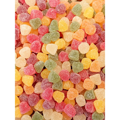 INGRÉDIENTS: sirop de glucose, sucre, eau, amidon modifié de pomme de terre, gélatine, acidifiants : E330, E296, E270, arômes, colorants : E102, E129, E133, E150c ; huile végétale (palme), agent d'enrobage : cire de carnauba. SANS GLUTEN.